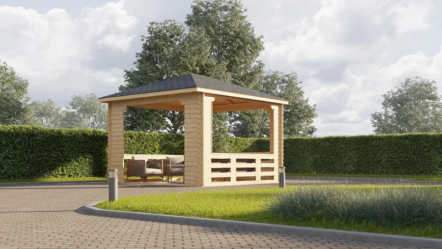 All 34mm (thickness of the wall structure)houses come with single glazed windows and all 44mm and above come with double glazed.